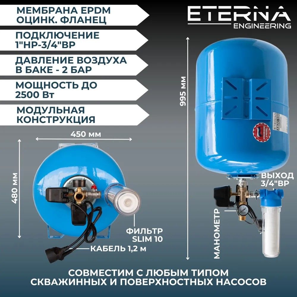 Читать все статьиГидроаккумулятор в сборе ETERNA АВ2С-100