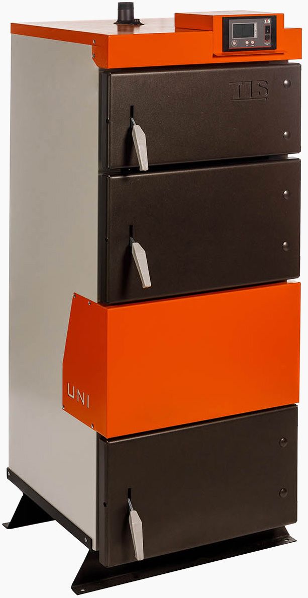 TIS UNI 95 – инновационный котел премиум класса (котел длительного горения). Рекомендуется для сжигания таких видов топлива, как дрова, торфяной брикет, уголь и различные древесные отходы. Котел серии UNI имеет в заводском комплекте самую современную европейскую автоматику, а также новейший модулируемый вентилятор наддува воздуха для горения и тления. Рабочая номинальная мощность 45-99 кВт.
